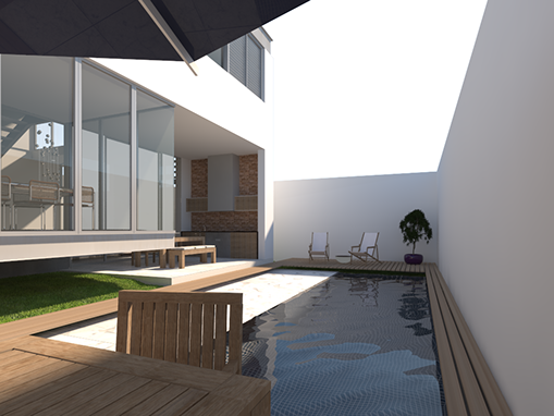 PROJETO 57 No ano de 2016, em meio a discussões sobre as condições climáticas e ambientais mundiais, surgiu mais uma oportunidade de desenvolver uma residência unifamiliar cujo projeto se estrutura em tecnologias e materiais sustentáveis. Foram incorporados sistemas de reuso de água , aquecimento e geração de energia por meio de energia solar, pontos de recarga para carros elétricos e materiais de maior eficiência térmica e acústica. Jardineiras, teto verde e jardim interno complementam as tecnologias empregadas na residência, levando a natureza para dentro da casa. Todas essas características culminam em um projeto completo que dialoga não somente com as necessidades do cliente mas também com as novas premissas arquitetônicas contemporânea. Dentro desses preceitos, produzimos um design sóbrio com detalhes construtivos elaborados, respeitando o terreno existente e sua vegetação. O destaque está no pavimento térreo começando pela ponte de entrada de pedestre, o pé direito duplo da sala de estar e a sala de jantar em balanço. Tais características fazem do conjunto final uma obra elegante e sofisticada.