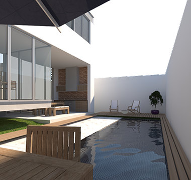 PROJETO 57 No ano de 2016, surgiu mais uma oportunidade de desenvolver uma residência unifamiliar cujo projeto se estrutura em tecnologias e materiais sustentáveis. Dentro desses preceitos, produzimos um design sóbrio com detalhes construtivos elaborados, respeitando o terreno existente e sua vegetação. O destaque está no pavimento térreo começando pela ponte de entrada de pedestre, o pé direito duplo da sala de estar e a sala de jantar em balanço. Foram incorporados sistemas de reuso de água , aquecimento e geração de energia por meio de energia solar, pontos de recarga para carros elétricos e materiais de maior eficiência térmica e acústica. Jardineiras, teto verde e jardim interno complementam as tecnologias empregadas na residência, levando a natureza para dentro da casa.