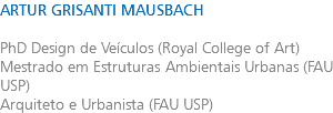 ARTUR GRISANTI MAUSBACH PhD Design de Veículos (Royal College of Art) Mestrado em Estruturas Ambientais Urbanas (FAU USP) Arquiteto e Urbanista (FAU USP)