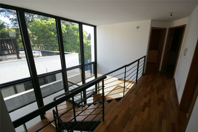 PROJETO 386 Quando o desafio também é o aproveitamento do potencial construtivo do lote, uma equação equilibrada entre espaços compactos, ambientes integrados e clareza de layout são essenciais. O Projeto 386 explora a verticalidade como recurso para a luminosidade interna e além disso incorpora elementos da linguagem arquitetônica dos projetos 370 e 462. Um destaque é o cuidado para manter as áreas permeáveis de acordo com as mais rígidas exigências, criando a necessária área verde. A vegetação incorporada nas jardineiras da fachada, voltaria a aparecer no projeto 57. Outro destaque é a estrutura metálica das escadas e corrimãos, integrada à estrutura da fachada e brise solei. A composição de pisos frios nos andares baixos e pisos de madeira no andar íntimo é usada para a criação das ambientações adequadas aos usos dos espaços.