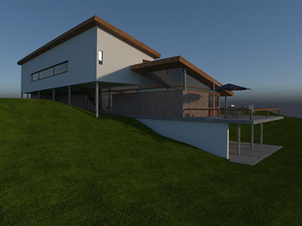 PROJETO 444 Projeta em 2004, junto com o arquiteto Ennio Possebon, o projeto 444 apresenta um trabalho em caixilharia, inspirado pela cultura japonesa. Disposta em um terreno em aclive, a casa levemente toca o solo, minimizando a intervenção na topografia. O Percurso ao redor da arquitetura é privilegiado. Na mesma propriedade são construídas 3 unidades residenciais para usos distintos. A caixilharia de madeira e vidro é projetada para manter a casa totalmente fechada ou bastante aberta